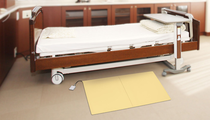 ワイヤレスシリーズは、ナースコールを運用している施設で離床センサーをワイヤレス化し、ナースコールに連動して離床をお知らせ。ワイヤレス化することで、つまづきや転倒の不安を軽減。