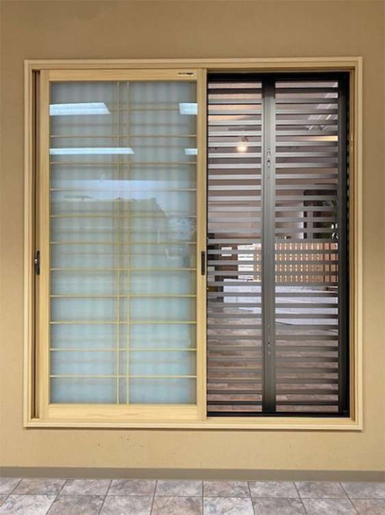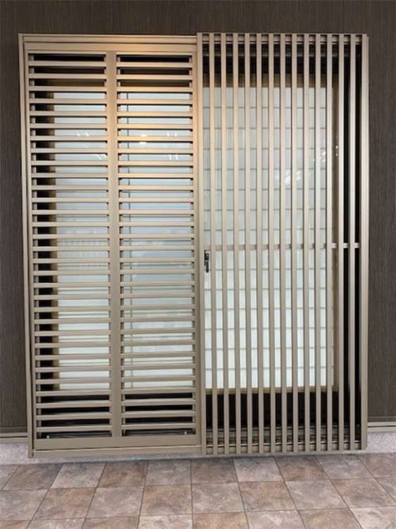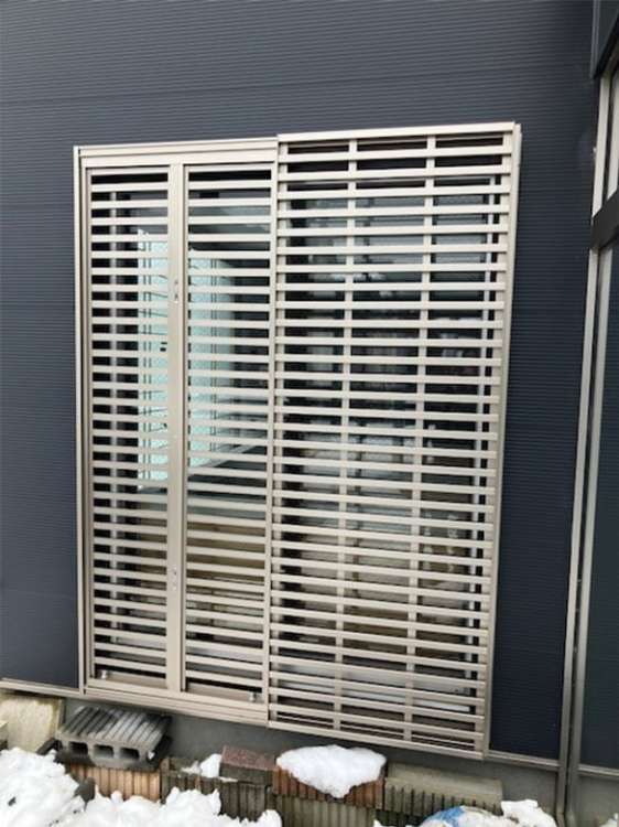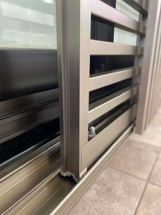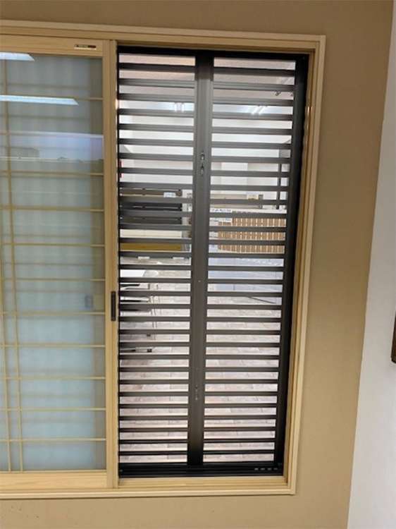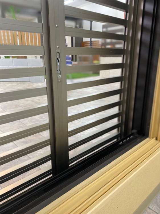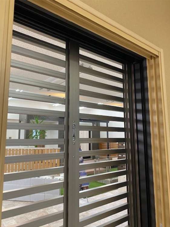 レバーをスライドすることでルーバー角度が自由自在に調整でき、雨戸をしめたままルーバー機能で通風や採光をすることができます。ルーバーは丈夫なアルミ製なので開いた状態でも堅牢で、指で押しても簡単に曲がったりしません。