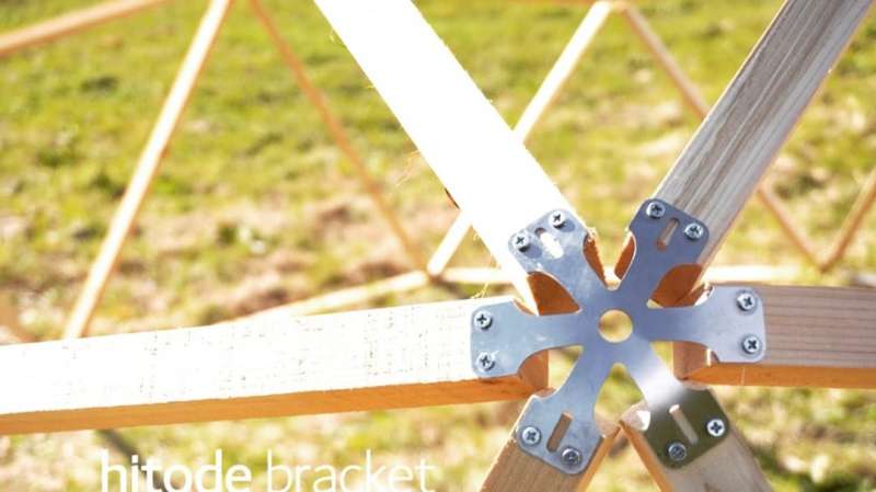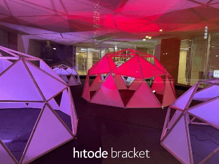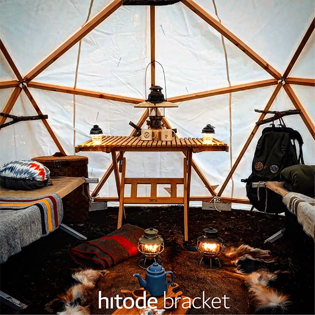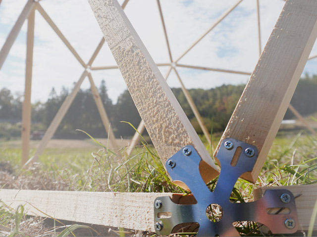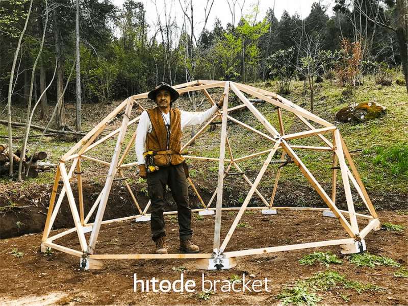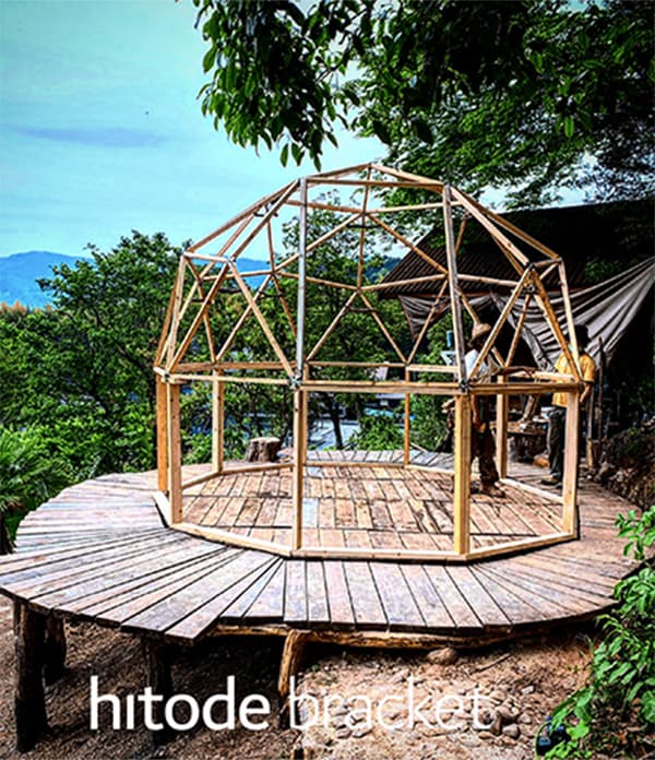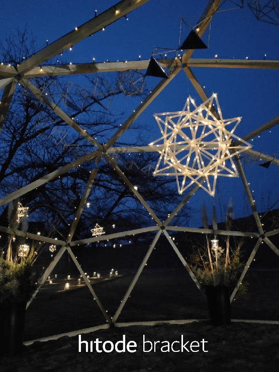 「hitode bracket」は、「joint5」を6枚、「joint6」を20枚、計26枚(1セット)を木につないで1つのドームを組み立てる金具です。