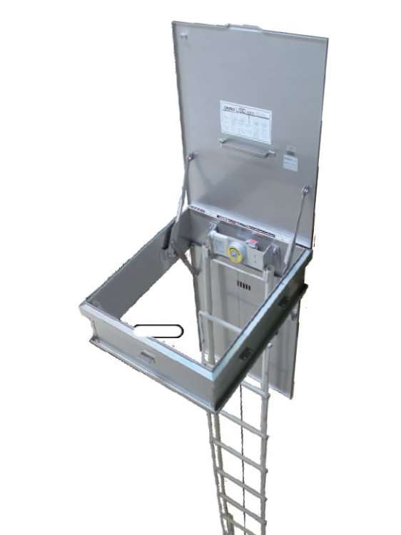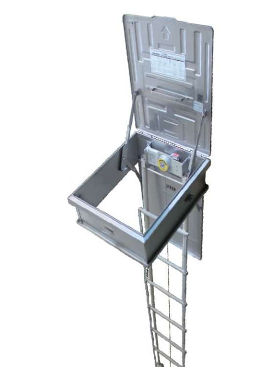 ORIRO(オリロー)の主力製品の一つでも避難ハッチは、はしごのよじれ及び揺れの少ない半固定タイプ。