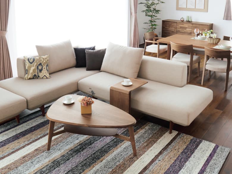 カリモクのカスタムオーダーシステムは、張地の色や素材、木部色などを多彩なラインナップからセレクト。幅の広いカラーコーディネートが可能で、細部にまでこだわりながら簡単にオリジナル空間を創造できます。