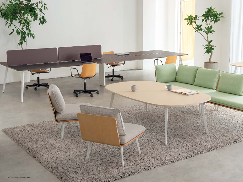 国産材活用家具、デスクシステムなどのワークスペース関連製品、ミーティングチェアなどのミーティング関連製品、書庫などの収納関連製品など、オフィスの環境を快適にする多種多様な製品を掲載。