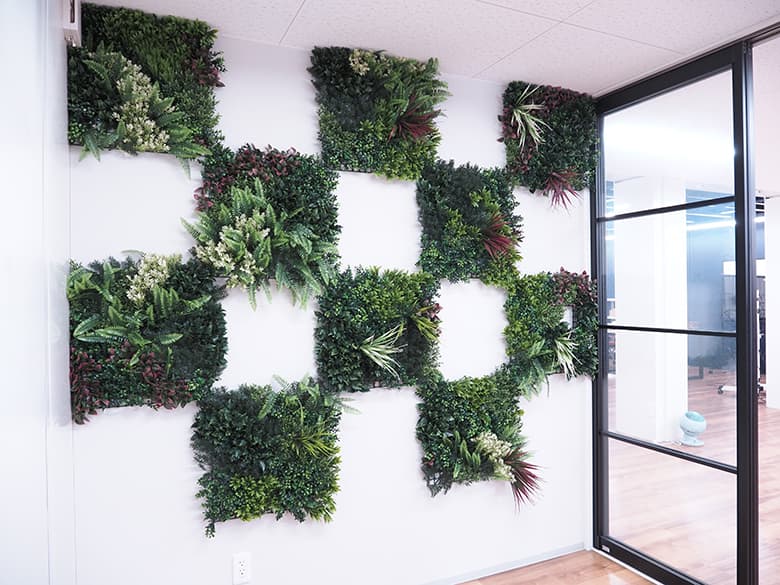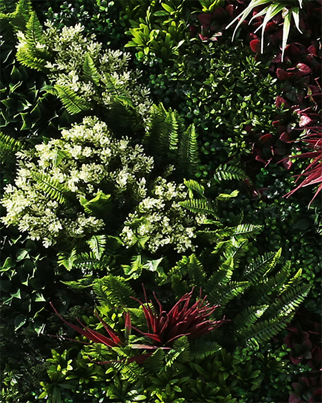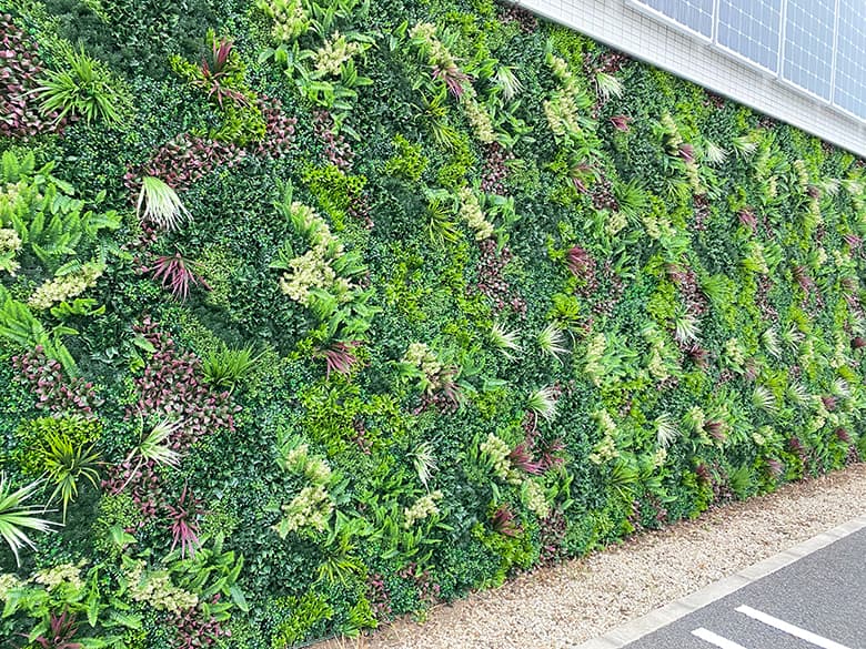 「moreleaf(モアリーフ)」は、リアルな見た目にこだわった人工壁面緑化パネル。ひとつひとつの植物の形状や色味、質感にこだわり、本物のような仕上がりを実現。