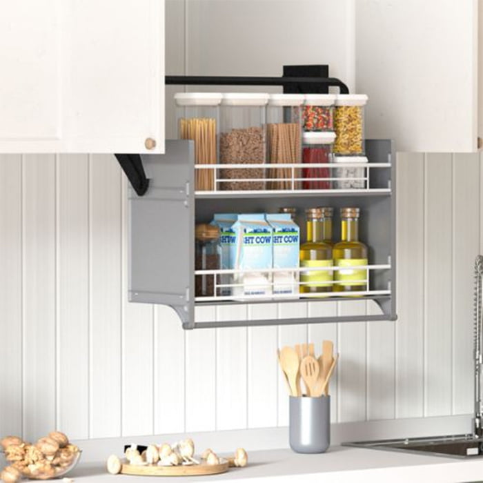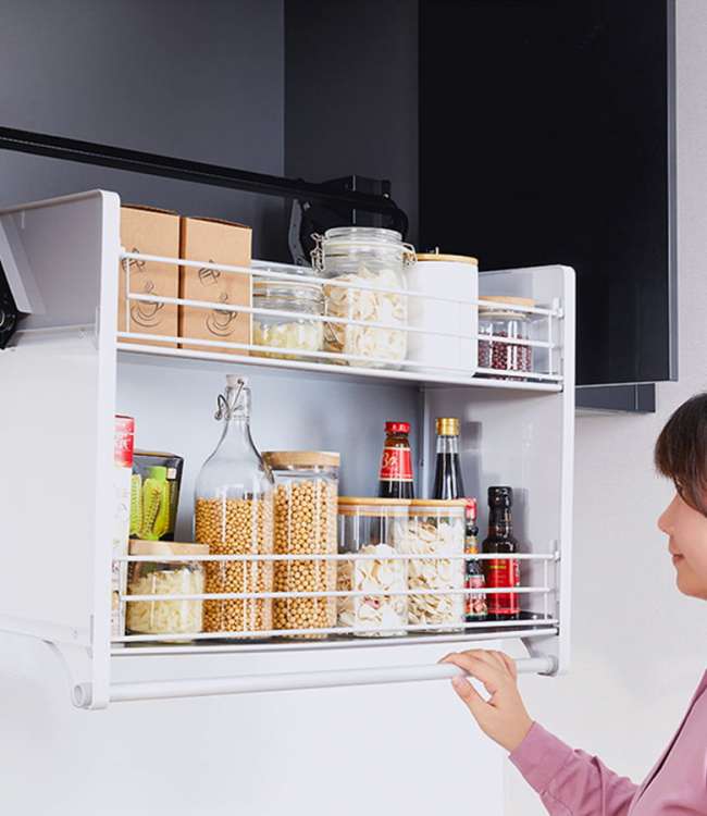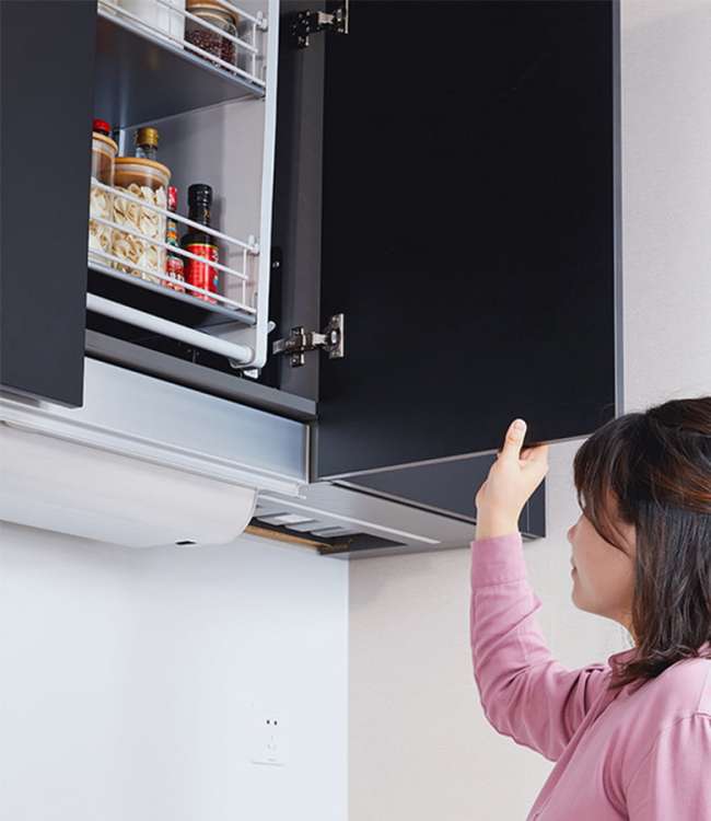 ダンパーが内蔵されており、収納ラックが急下降することを防止します。