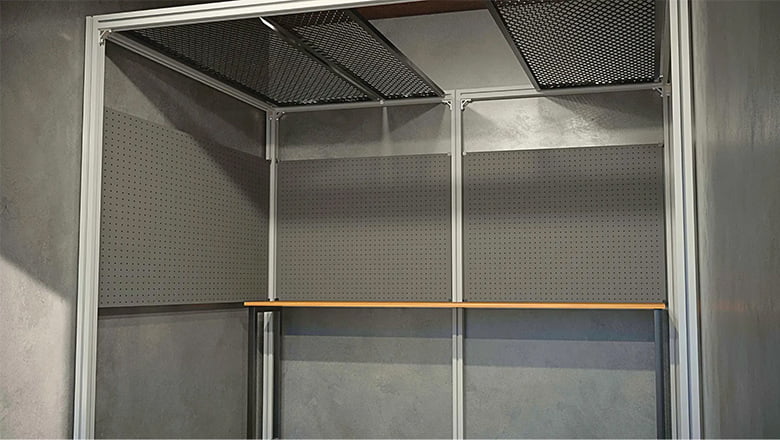 柱間へ有孔ボードなどのパネルを簡単に取付けることができます。