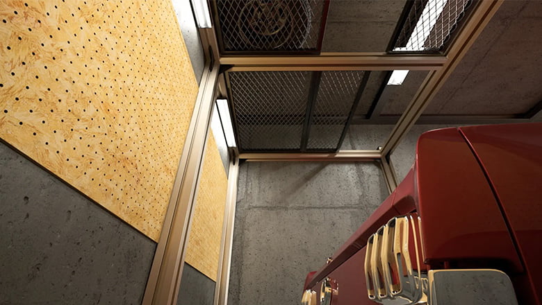 天棚は、透過性のある可動式エキスパンドメタル。