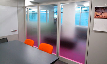 「FROGRAF(フログラフ)」は、従来のガラス面目隠しフィルムではできなかったグラデーション表現を可能とした、新感覚の装飾用ガラスフィルムです。磨りガラス調のグラデーション表現が可能で、ドットを使わないグラデーション表現が可能。