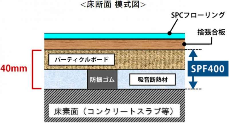 ■床遮音性能:LL-45相当…薄くて硬く、床遮音性能の確保が難しいと言われているSPCフローリングで性能取得!