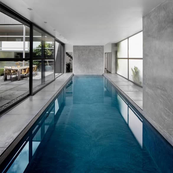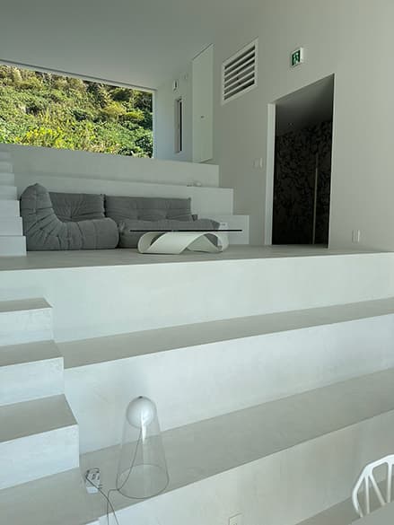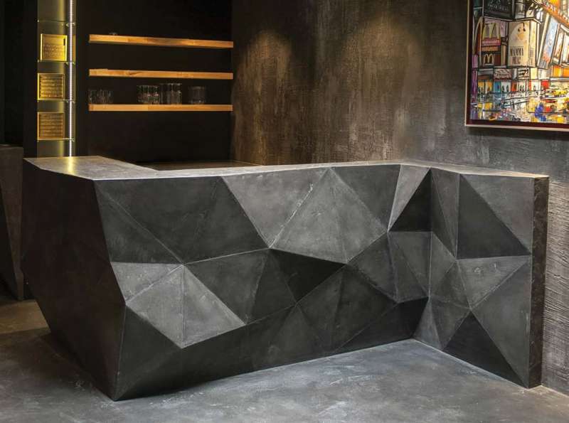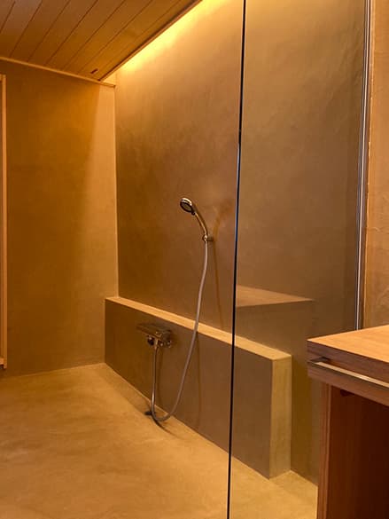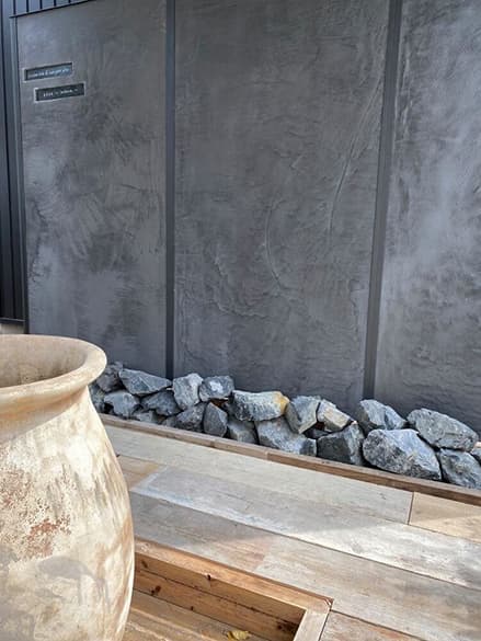 「MORTEX(モールテックス)」は、水を通さない薄く強靭な仕上げ層をつくる左官塗材。屋内外を問わず使用でき、装飾性に富んだ壁面や家具、什器の製作も可能。