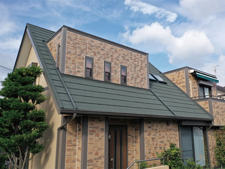 「エコル(ECOR)」は、天然石とガルバリウム鋼板でできたハイブリッド屋根材です。シンプル&スマートなデザインで、自然石の風合いをシャープに魅せます。