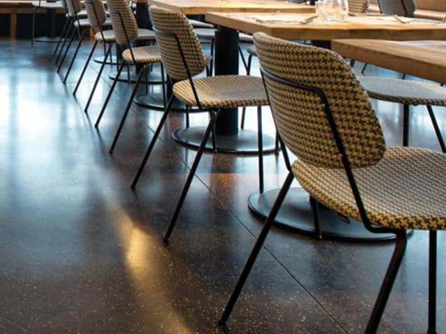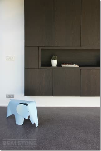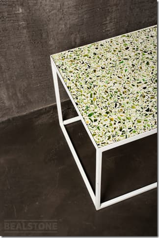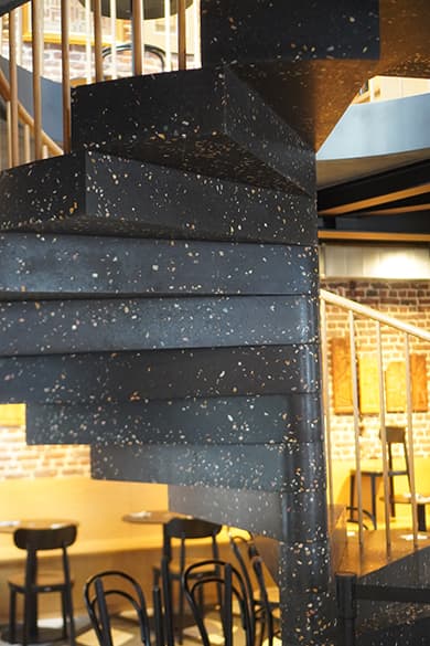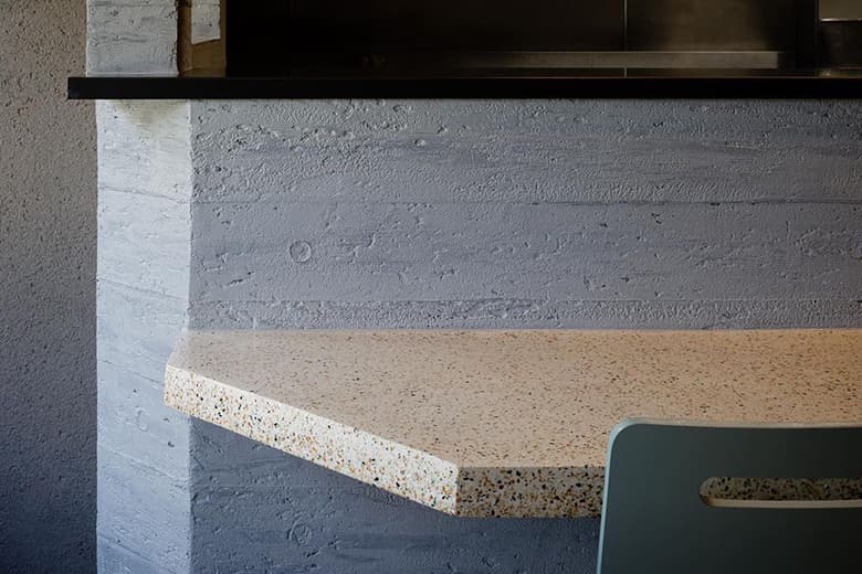 「BEALSTONE」は「研ぎ出し」「テラゾ」などのDNAを引き継ぐ、2 mm 厚から施工可能な鉱物性塗材です。天然石、木材、ガラス、金属などさまざまな素材と組み合わせることができるため、独特で個性的な表情の実現を可能にします。