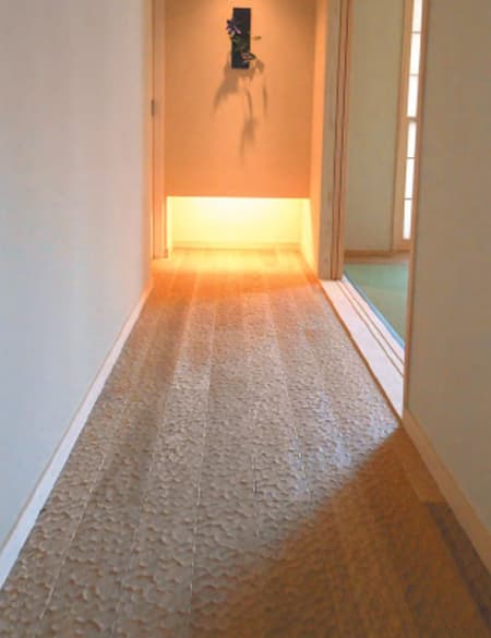 「なぐり加工」とは、木材の板などに独特の削り柄をあしらった日本古来の表面加工技術です。職人の熟練の技により手間をかけて製作するため、昔から高級品として扱われてきました。