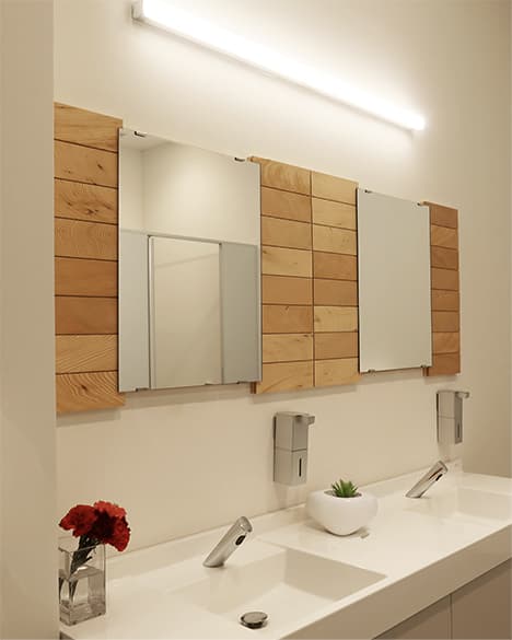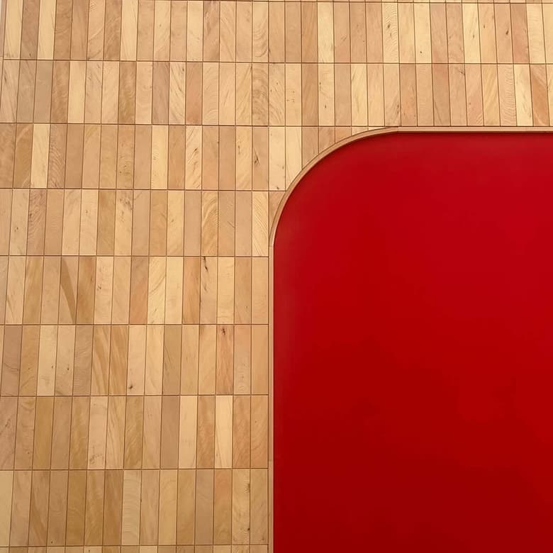 ツガの美しい木目模様と色調を最大限に生かしたウッドタイルです。廃棄物ゼロの工場で製造されている次世代のエコ建材で、耐久性に優れています。