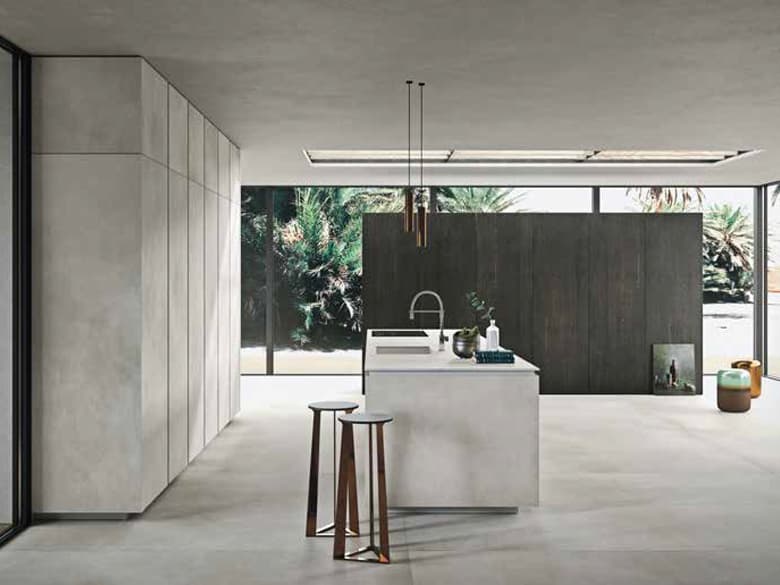 「Laminam(ラミナム)」は、1620mm×3240mmの1サイズ展開。通常のタイルや天然石では実現できなかったシームレスなデザインが、魅力ある空間を演出します。