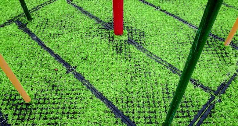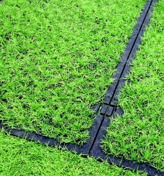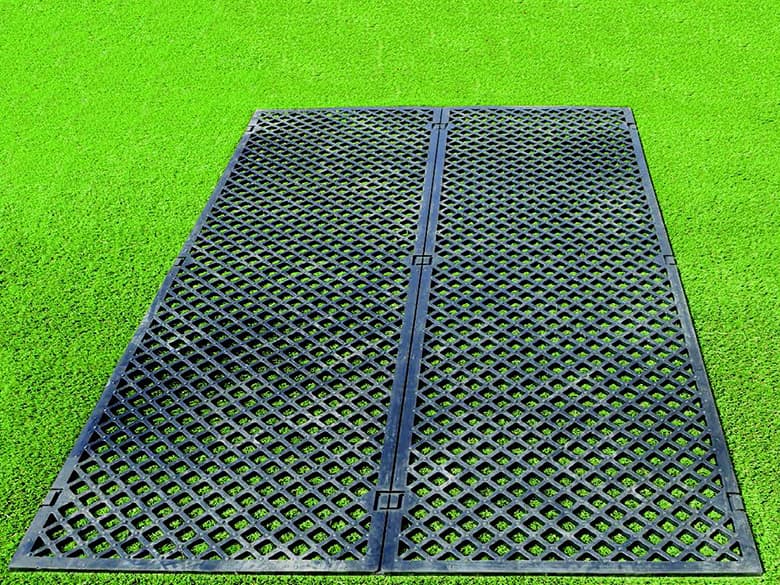 歩行や自転車走行などの踏圧や擦り切れから大事な芝生を守ります。ラバーマットの内側は28mm角の網目状になっているので、網目の中で芝生を保護しながら育てられます。